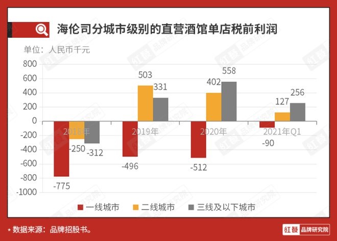 此外,海倫司全國定價(jià)統(tǒng)一,在下沉城市擁有較高的知名度和性價(jià)比,能夠滿足小鎮(zhèn)青年的消費(fèi)升級(jí)需求。另一方面,低線城市的門店租金相比一二線城市較低,企業(yè)能夠有效壓低成本。海倫司在三線及以下的市場(chǎng)表現(xiàn)出優(yōu)秀的盈利能力。數(shù)據(jù)顯示,2018年至2021年Q1,三線及以下城市的直營酒館單店稅前平均利潤均高于一二線城市,2021年Q1達(dá)256千元,約為二線城市的2倍。