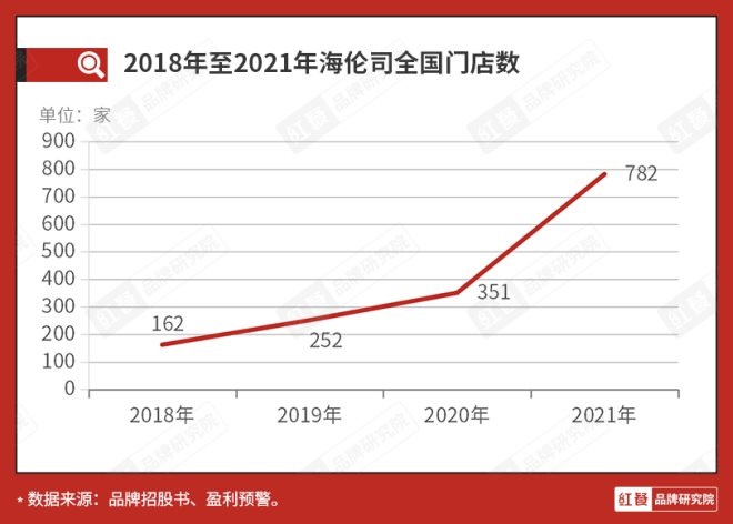 2019年至2020年,海倫司的門店增長速度約為每年100家。2021年,上市得到資本加持后,其門店增長速度翻了四倍。