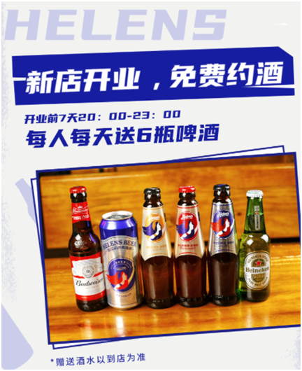 此外,海倫司推出的“新店開張7天免費(fèi)喝”“酒水優(yōu)惠券”等促銷活動(dòng)也是吸引目標(biāo)消費(fèi)人群的利器。譬如, 線上的社交網(wǎng)絡(luò)就是海倫司的一大營銷陣地。在微信公眾號(hào)、微博、小紅書、抖音等社交平臺(tái),海倫司針對(duì)新店開張、傳統(tǒng)節(jié)日,以及一些特殊節(jié)點(diǎn)如“世界討厭香菜日”“谷愛凌奪冠”等,每月至少推出一次促銷活動(dòng),公眾號(hào)文章閱讀量達(dá)10萬+,其他平臺(tái)轉(zhuǎn)評(píng)贊量均超過一百。