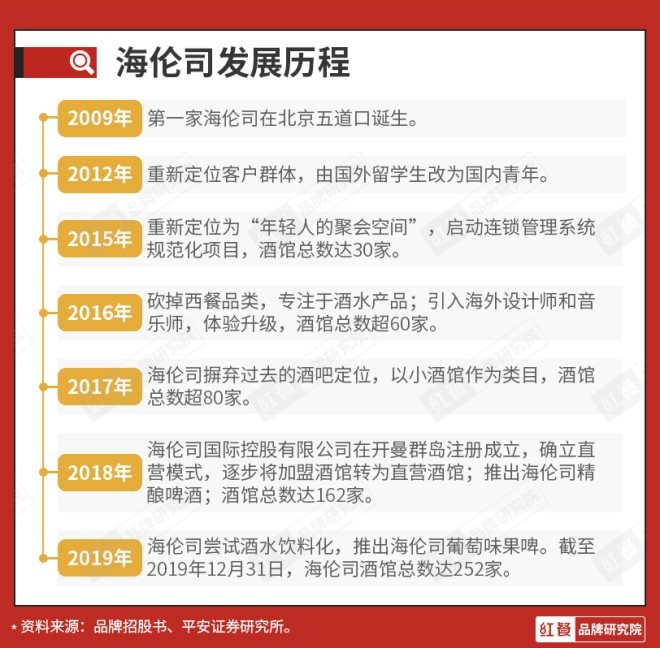 隨后,徐炳忠渴望走向更大的客群。2012年,徐炳忠對(duì)海倫司進(jìn)行了第一次品牌迭代:海倫司定位為“年輕人的聚會(huì)空間”,將目標(biāo)客群從國外留學(xué)生擴(kuò)充至年輕消費(fèi)群體。第二次迭代發(fā)生在2016年:海倫司砍掉西餐品類,專注于酒水產(chǎn)品。一年后,海倫司摒棄過去的酒吧定位,以小酒館作為類目。
