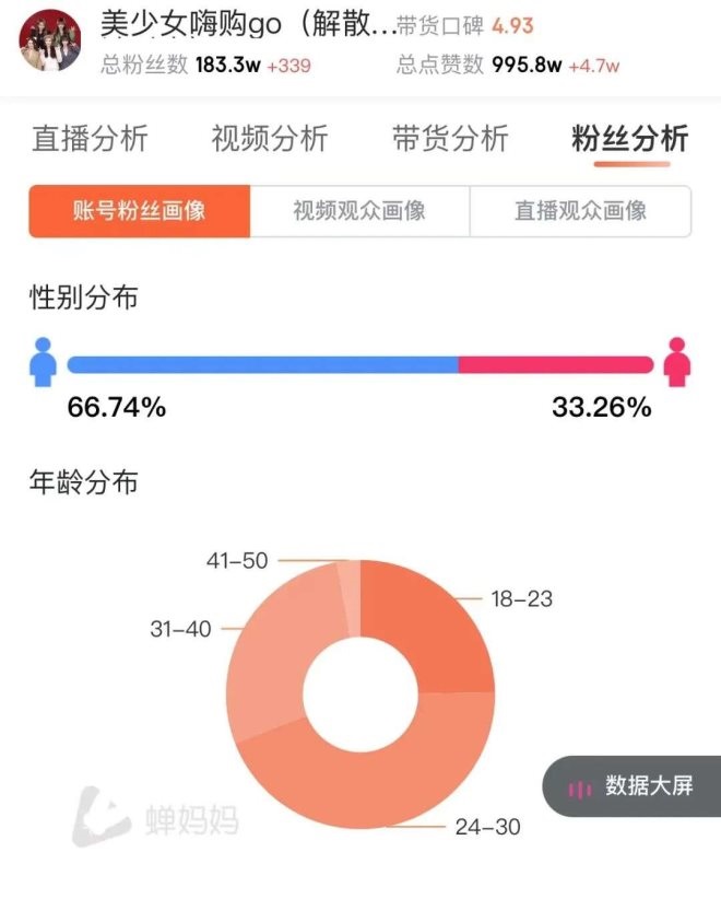 首先,蹦迪帶貨吸引到的人群很難帶來有效的轉(zhuǎn)化空間,從數(shù)據(jù)來看,其粉絲人群大部分為年輕男性,而這批人更多是奔著荷爾蒙來的,而非消費轉(zhuǎn)化的核心人群。