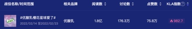通過時趣洞察引擎檢索#優(yōu)酸乳櫻花星球愛了#戰(zhàn)役,相關(guān)話題閱讀量達到了1.8億,討論數(shù)達到176萬,品牌為消費者注入體驗式營銷的同時,也引著發(fā)消費者的自主分享傳播,在影響力、銷量、口碑等方面制造著正向反饋。