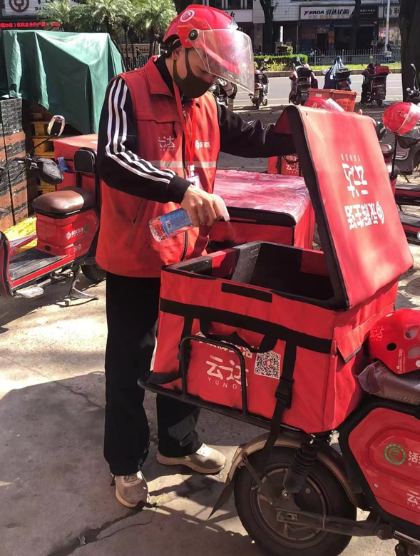 對永輝門店揀貨區(qū)、打包區(qū)、交接區(qū)及騎手停車配送區(qū)進行消殺,每天早、中、晚各一次。同時對騎手配送箱及配送車也進行嚴格消毒。經(jīng)手配送訂單的倉內(nèi)揀貨人員及騎手都需要進行個人消毒,分別在上班及下班時。尤其是騎手,在配送返程后仍需要進行消毒,以實現(xiàn)閉環(huán)防疫。