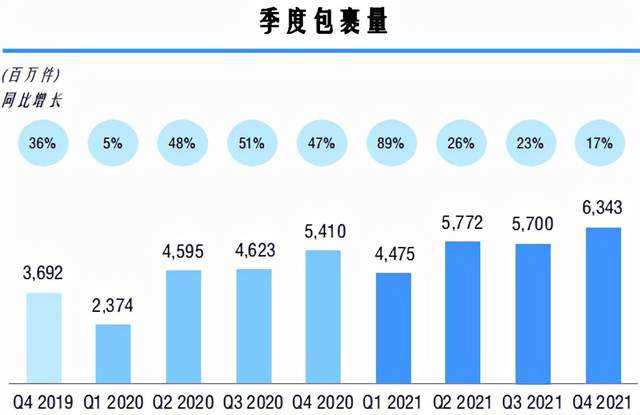 據(jù)悉中通Q4營(yíng)收的增長(zhǎng),主要來(lái)自業(yè)務(wù)量的提升。根據(jù)財(cái)報(bào),中通包裹量為63.43億件,較2020年同期的54.10億件增長(zhǎng)17.2%。