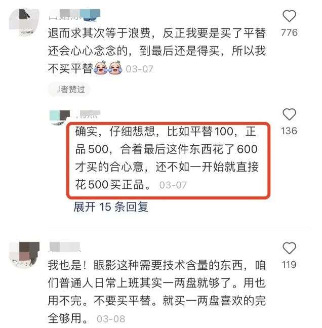 “退而求其次等于浪費(fèi),買(mǎi)了平替還會(huì)心心念念,到最后還是得買(mǎi)(正品)!