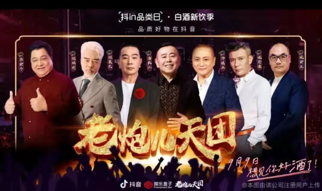 娛樂盒子推出包括張晨光、潘長江、姚安濂在內(nèi)的“老炮兒天團”,并在宣傳海報標出“白酒新飲季”。和美妝、服飾相比,白酒與中年男演員的匹配度似乎更高,尤其是區(qū)別于市場中大眾酒的高級酒,似乎更能彰顯他們的品味。
