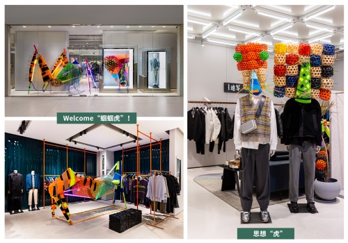 壬寅虎年,萬象更新,江南布衣集團攜手品物流形PINWU共同推出虎年“新寵”——以傳統(tǒng)編織工藝創(chuàng)作的「蟈蟈虎」系列櫥窗與藝術裝置,創(chuàng)造了富有戲劇沖突的藝術形象,不僅是送出美好新年祝福,更是向大眾展現(xiàn)江南布衣集團對于中國傳統(tǒng)文化與可持續(xù)時尚的探索和思考。