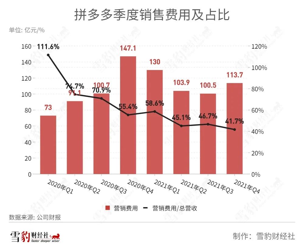 自陳磊接棒以來(lái),持續(xù)壓低營(yíng)銷(xiāo)費(fèi)用和管理費(fèi)用。2021年Q4,銷(xiāo)售和營(yíng)銷(xiāo)費(fèi)用為113.66億元,同比下降23%。
