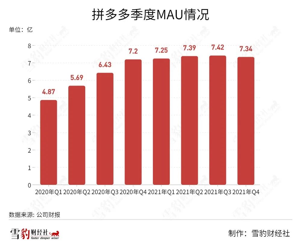 此外,截至2021年Q4,拼多多月活用戶(hù)為7.334億,相比Q3的7.415億減少了810萬(wàn)。