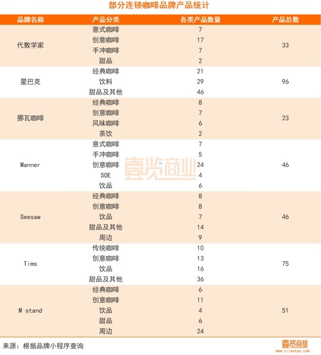 由此可以看出,代數(shù)學(xué)家在產(chǎn)品方面雖不如Seesaw、Manner、Tims等咖啡品牌出品多,但目前依舊專注于咖啡上,并未過多在甜品、非咖啡類產(chǎn)品上的布局。
