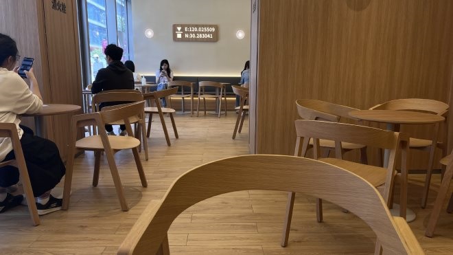 總體來說,店內(nèi)裝修簡(jiǎn)約大方,不過由于店內(nèi)面積受限,桌椅板凳擺放顯得較為擁擠,桌子之間相互靠得很近,甚至能聽到隔壁桌消費(fèi)者打電話的聲音。并且店內(nèi)只有一個(gè)可供充電的插頭,也不提供充電寶,對(duì)于在咖啡館辦公的白領(lǐng)來說不算友好。由于是上班時(shí)間,店內(nèi)消費(fèi)者并不多,但是一到了中午休息時(shí)段,有不少周邊公司的上班族涌進(jìn)咖啡館購(gòu)買咖啡,聲音嘈雜,店內(nèi)也被人填滿了。