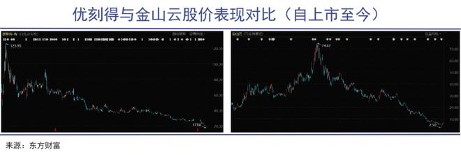 根據(jù)IDC報告,金山云曾長期位列國內(nèi)公有云市場前三,但在2019年后讓位于華為云,成為前五之外的“others”;同樣的,優(yōu)刻得在2017年曾位居國內(nèi)公有云IaaS市場市占率第五位,2018年也落后進入了“others”之列。自此之后,兩家企業(yè)再沒回到前五的行列。