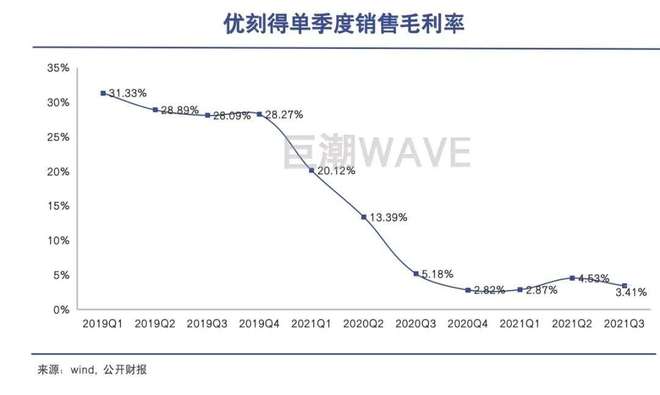 以優(yōu)刻得為例,招股書顯示,其五款核心產(chǎn)品機柜托管、UNet(按帶寬計費)、U(D)DB數(shù)據(jù)庫、云分發(fā)(按帶寬計費),2020年相比2018年平均單價的年均復(fù)合變動率分別為-19.63%、-3.80%、-18.85%、-2.15%、-25.67%。受此影響,優(yōu)刻得的毛利率不斷下滑,從2018年的接近40%下滑至不到5%,虧損金額也逐年擴大。