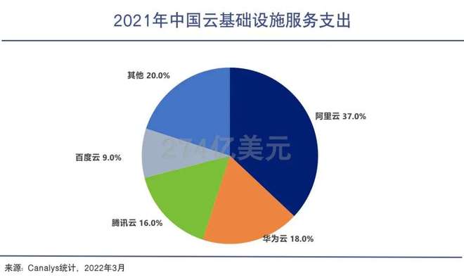 來自Canalys的數(shù)據(jù)顯示,2021年中國大陸云計算增長勢頭強勁,云基礎(chǔ)設(shè)施服務(wù)市場規(guī)模增長45%,總計達到274億美元。且未來5年仍將保持25%的年復(fù)合增速。