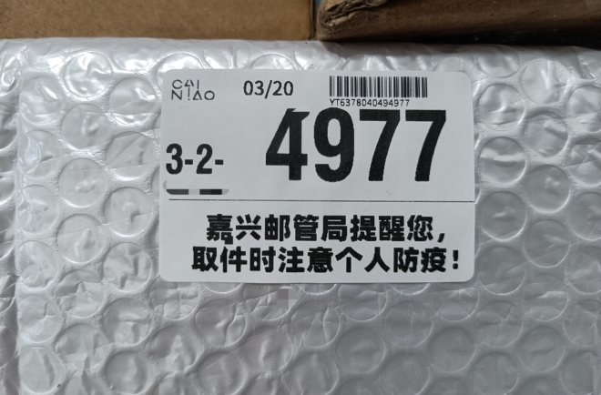 “嘉興市郵政管理局提醒您,取件時注意個人防疫!”在嘉興永興小區(qū)菜鳥驛站,每個包裹的取件碼小票上都印有這樣一句文案。在驛站,用戶陳女士到驛站領(lǐng)取完帶有防疫提醒的包裹后,將其帶回了家。