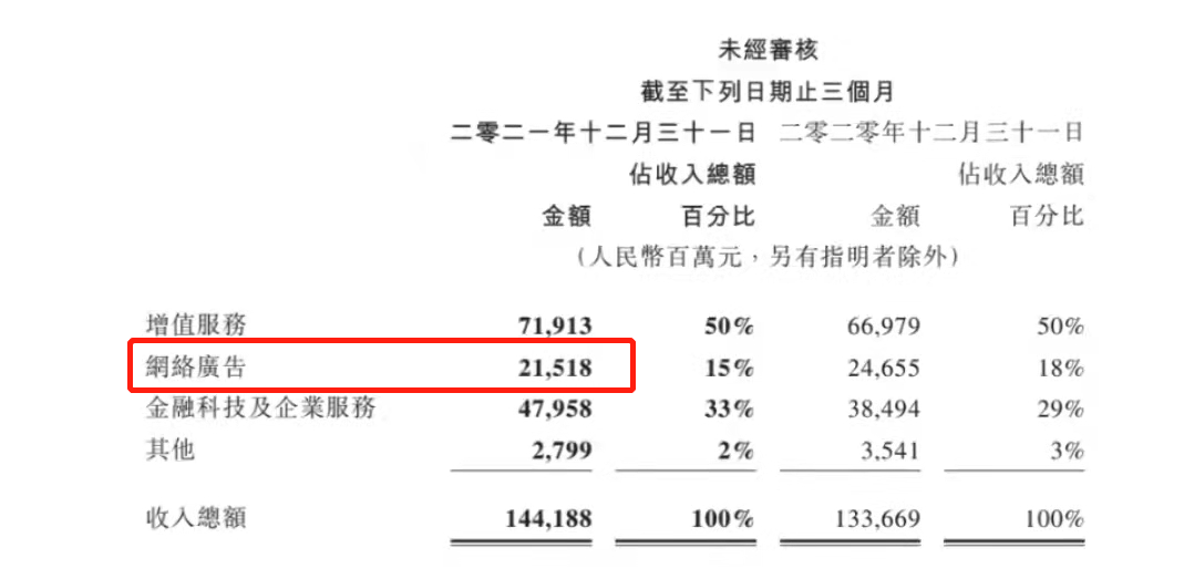 此外,再加上在線教育、游戲、金融等行業(yè)的低迷和收縮,尤其是“雙減”之后在線教育廣告需求的疲弱,直接影響了2021年四季度騰訊的網(wǎng)絡(luò)廣告收入。