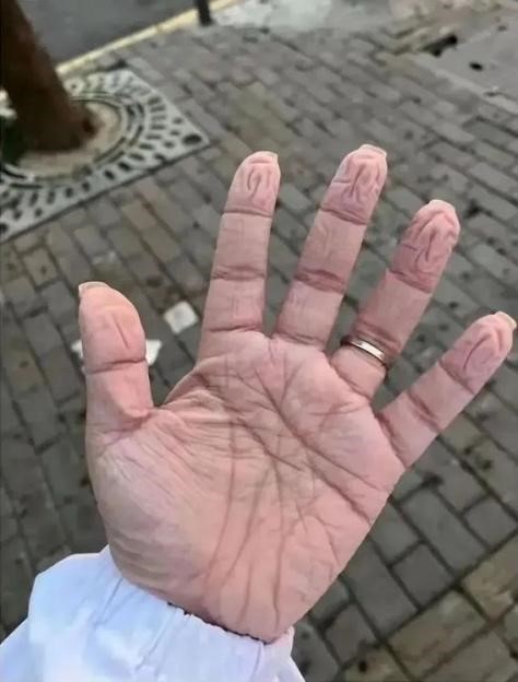 特別是身穿白色防護(hù)服的醫(yī)護(hù)人員,夜以繼日奮戰(zhàn)在工作崗位上。由于汗水和消毒液的長期浸泡,脫下防護(hù)手套,盡是一雙雙被泡腫,滿是褶皺和脫皮的手。