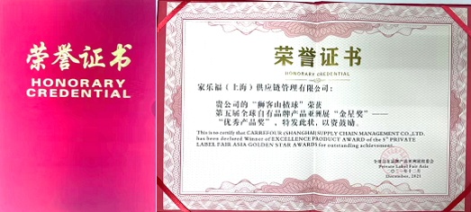 家樂福自主品牌“獅客山楂球”獲獎證書