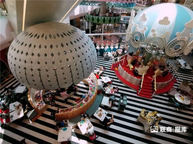 比如AB館空中連廊,以富有韻律動(dòng)感的彩色浪潮進(jìn)行天花裝飾,為休憩增添了空間氛圍。BD館地下連廊,除了聯(lián)通B和D館的功能性以外,還具有休憩、策展等時(shí)尚體驗(yàn)功能,將成為潮流達(dá)人打卡點(diǎn)的網(wǎng)紅區(qū)域。CD館室內(nèi)中央連廊設(shè)有半戶外特色區(qū),讓顧客身處室內(nèi)可近距離感受戶外庭院、親近大自然,同時(shí)在不同樓層體驗(yàn)不同的主題氛圍,實(shí)現(xiàn)“移步換景”。CD館三樓連廊設(shè)置了熱氣球、滑滑梯、攀爬墻,勢必將成為兒童的天堂。
