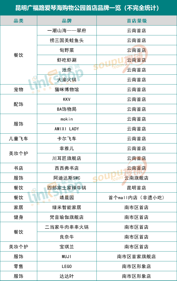 此外,昆明廣福路愛琴海還有一大批聚客能力超強門店: