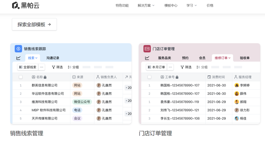 2019年,陳金洲再次創(chuàng)業(yè),黑帕云誕生,定位是企業(yè)級(jí)數(shù)據(jù)協(xié)作平臺(tái)。黑帕云的產(chǎn)品,相比 Excel 能做到多人協(xié)作和云端同步,相比軟件開(kāi)發(fā)商個(gè)性化定制的信息管理系統(tǒng),搭建起來(lái)更為快速。線下門(mén)店實(shí)現(xiàn)訂單從預(yù)約、到店、驗(yàn)收、到售后的全流程數(shù)字化管理,VC投后團(tuán)隊(duì)向項(xiàng)目創(chuàng)始人收集業(yè)務(wù)發(fā)展情況、重要人員異動(dòng)情況、財(cái)務(wù)數(shù)據(jù)等其他信息,都有類似產(chǎn)品的用武之地。
