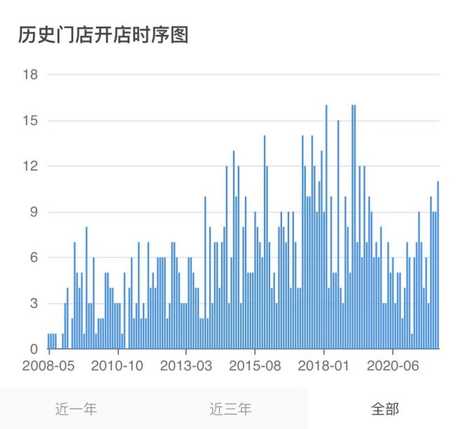 在臺(tái)灣發(fā)展四年后,85°C在2007年登陸上海,開(kāi)了內(nèi)地第一家門(mén)店。根據(jù)寨門(mén)餐眼的數(shù)據(jù)顯示,2014年-2019年,85°C高速擴(kuò)張,2018年達(dá)到了開(kāi)店高峰。2017年,85°C在美國(guó)開(kāi)了全球第1000家。之所以高速擴(kuò)張的原因,是因?yàn)?5°C 在2014年末正式開(kāi)啟委托經(jīng)營(yíng)模式(由優(yōu)秀員工承攬營(yíng)運(yùn)業(yè)務(wù),但硬件設(shè)備仍由母公司出資負(fù)責(zé),是開(kāi)放加盟的過(guò)渡模式)。隨后,因2020年疫情開(kāi)店速度減緩,2021年又逐步恢復(fù)到了2013年的水平。