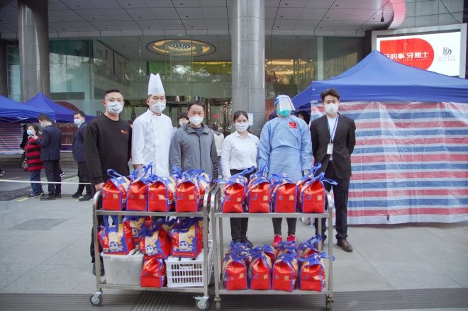 疫情期間,中央商場響應政府號召,積極配合核酸采樣并攜手“望蓉城”餐飲為共同抗疫盡一份綿薄之力。于3月24、25日下午攜手”望蓉城“餐飲為洪武路街道與雙塘街道奮戰(zhàn)在一線的醫(yī)護人員與志愿者們送上了80份愛心餐。鮮美的魚肉配上熱乎乎的米飯和清涼的奶茶,傳遞著疫情下人與人之間溫暖,也彰顯企業(yè)的社會的責任感。這次公益活動也得到了現(xiàn)場醫(yī)護人員、志愿者們和市民的一致好評,也獲得商務局、區(qū)、街道領導的高度點贊。