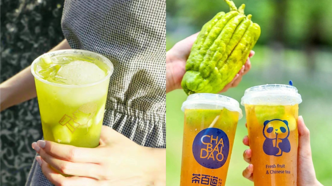 同在東南亞菜系中常被使用到的香茅,也有不少品牌在推新,比如喜茶的香爆檸和綠暴檸,茶百道的佛手柑檸檬茶中都添加了香茅。
