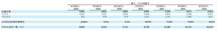 截止2021年12月31日,瑞幸門(mén)店總數(shù)共有6024家,其中4397家為自營(yíng)店,1627家為加盟店。2021年新開(kāi)店數(shù)量為1221家,同比增長(zhǎng)25.4%,其中60%的新店均為加盟店。