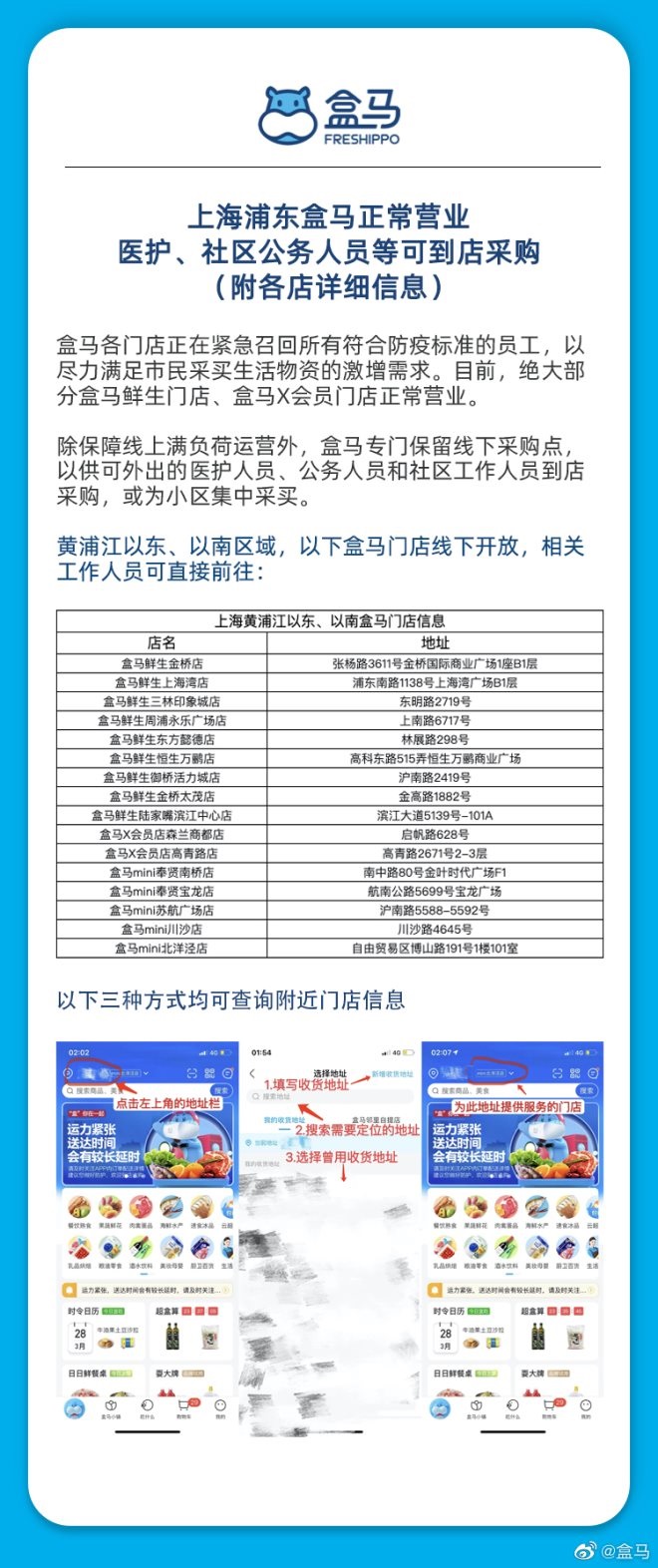 目前,浦東地區(qū)絕大部分盒馬店在確保線上滿負(fù)荷運(yùn)營的前提下,保留線下開放,為尚可出入社區(qū)的醫(yī)護(hù)人員、志愿者等相關(guān)人士“留門”。
