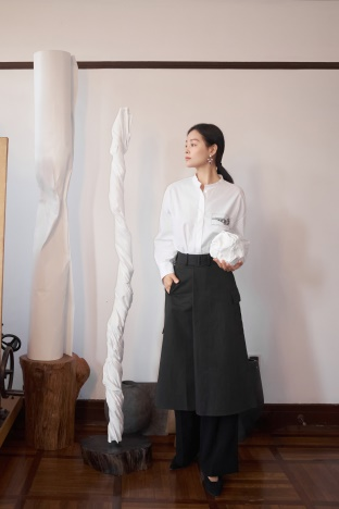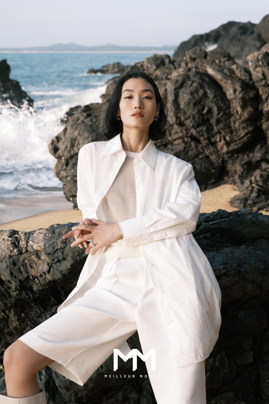 追逐面料的品質(zhì)感是MM麥檬的品牌基因,在白襯衫上亦是如此,本季,延續(xù)甄選天然長(zhǎng)絨棉,以現(xiàn)代解構(gòu)的的肌理感為靈感,運(yùn)用輕鹽縮與水洗工藝,賦予面料特有骨干褶皺的肌理設(shè)計(jì)。融匯創(chuàng)新空氣洗起皺工藝,通過物理空氣拍打的方式,打造全新紙感面料。