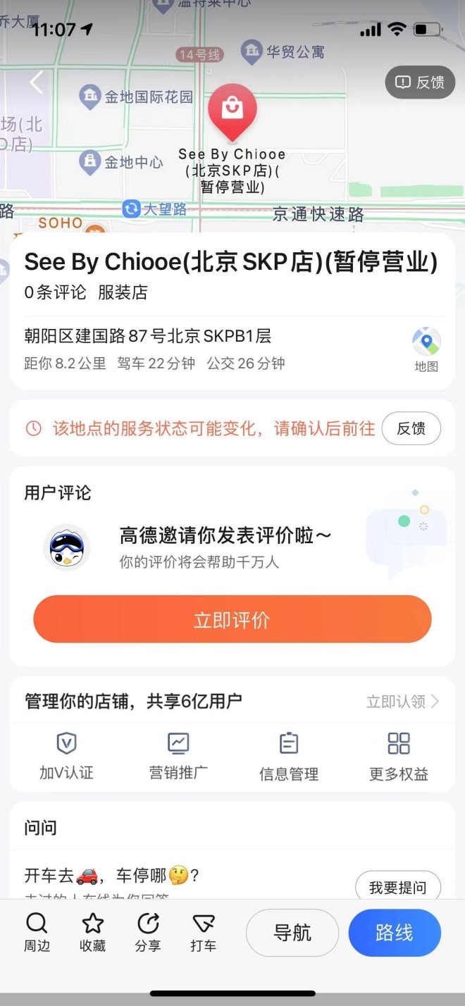 3月28日,北京商報記者走訪發(fā)現(xiàn),北京現(xiàn)在已無Chloé副線品牌 See by Chloé的獨立門店。