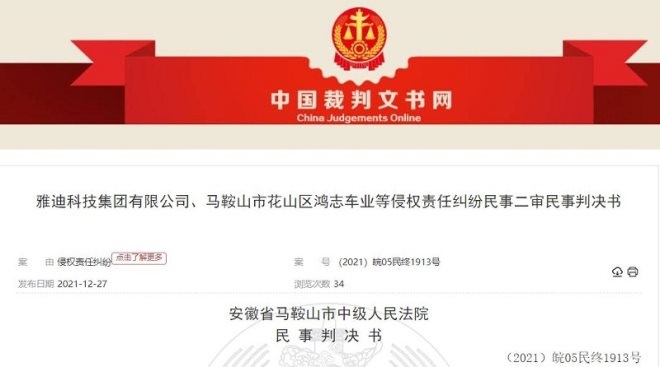實際上,除了被曝出門店問題和虛假宣傳外,雅迪還曾因車輛起火吃過官司。