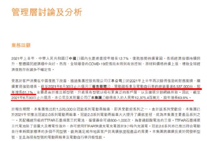 圖源/雅迪中報截圖