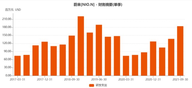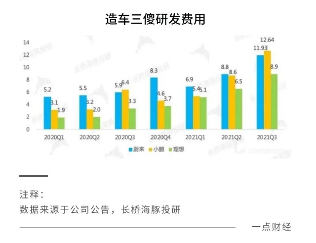 數(shù)據(jù)顯示,2021年三季度前,理想汽車的研發(fā)費(fèi)用一直遠(yuǎn)低于蔚來和小鵬,從而在技術(shù)積累方面落后于對手。