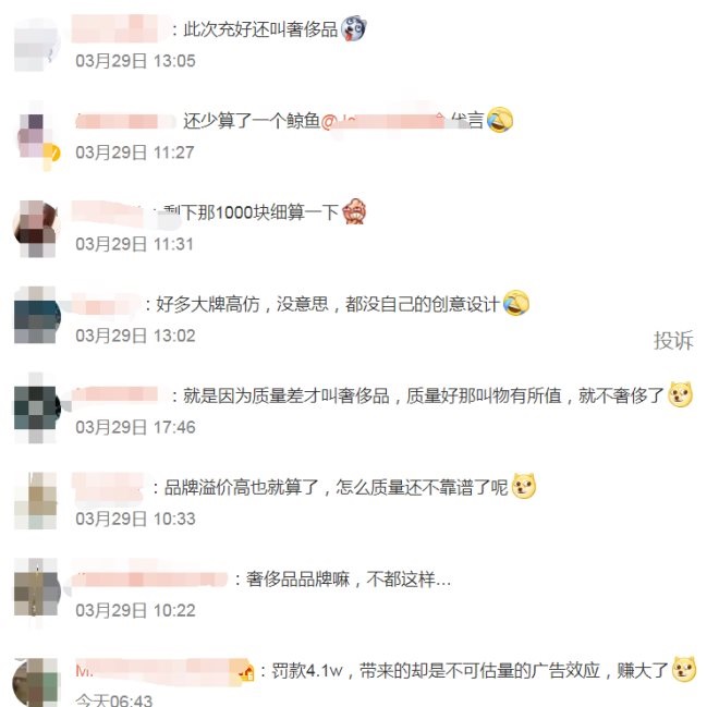 微博網(wǎng)友對此評論“以次充好還叫奢侈品”“這種新聞對服裝行業(yè)的線下實(shí)體店是致命的”“所謂的大牌衣服不就是智商稅嗎?”