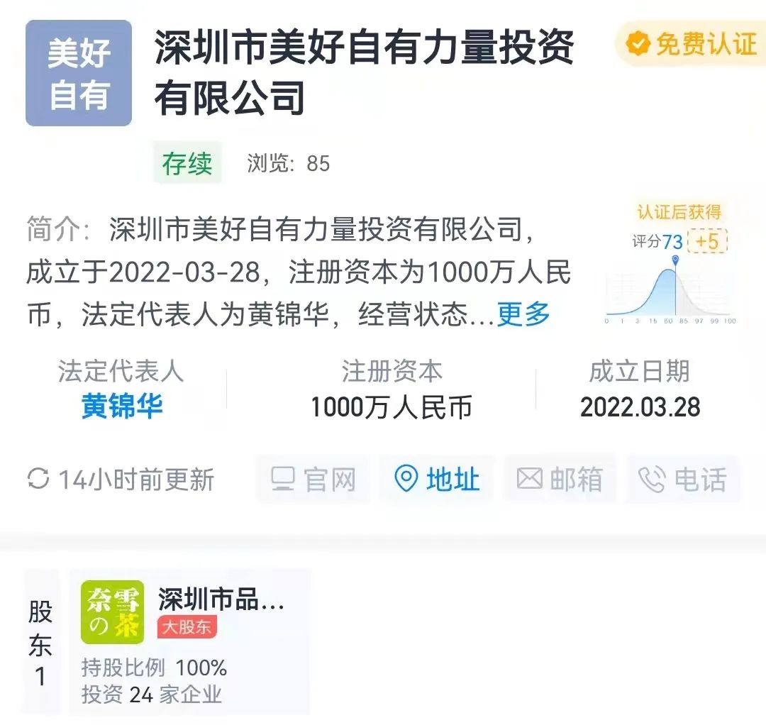 3月28日,一家名為深圳市美好自有力量投資公司注冊(cè)成立——仔細(xì)一品,這竟是奈雪的茶成立的投資公司。