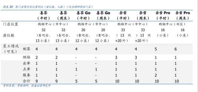 此前一份國盛證券的調(diào)研結(jié)果顯示,對(duì)比同樣位于購物中心的喜茶Go(類似于奈雪的PRO店,門店面積更。、奈雪Pro店,喜茶Go店的人員節(jié)省明顯。喜茶Go店里的員工數(shù)量是標(biāo)準(zhǔn)店的一半,而奈雪PRO比標(biāo)準(zhǔn)店設(shè)置的制茶員工更多,總員工數(shù)都是10人左右。