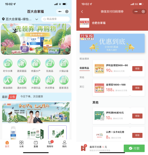 晚上19:00,由中皖知托付為百大合家福打造的“合你伊起,乳此精彩”小程序品牌IP專場直播活動正式開始!此次直播活動覆蓋合肥當(dāng)?shù)?7家門店。