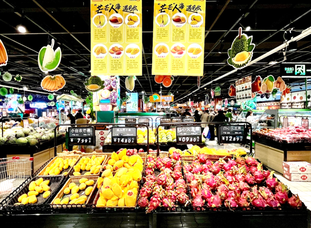 從凌晨4點(diǎn)起,當(dāng)天日配的新鮮魚類、肉類也陸續(xù)到店。5點(diǎn)半,所有生鮮部門的員工到店完成早間收貨、驗(yàn)貨,并整理好排面,做好營業(yè)準(zhǔn)備。