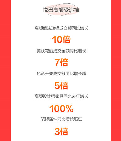 現(xiàn)代人的居家生活更注重儀式感和幸福感,能提高視覺享受的高顏值產(chǎn)品尤其受歡迎。其中,色彩開關(guān)成交額同比增長超5倍,裝飾擺件成交額同比增長超3倍,高顏設(shè)計師家具成交額同比增長100%。除此之外,高顏值琺瑯鍋成交額同比增長10倍,美膚花灑成交額同比增長7倍。