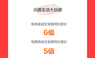 當(dāng)家成為融合工作、學(xué)習(xí)、休閑等眾多功能的重要場所,更多人開始關(guān)注興趣生活的充實。電競桌椅成為高人氣代表,其中電競桌成交額同比增長6倍,電競椅成交額同比增長5倍。