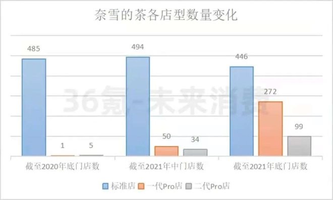 在過去的一年間,奈雪門店總數(shù)的提升,主要來源于Pro門店的數(shù)量增加。其原有標(biāo)準(zhǔn)店型的數(shù)量,反而有所減少。