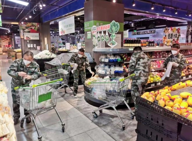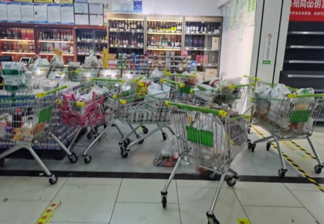 在這場無聲的戰(zhàn)“疫”中,援務(wù)志愿者們、政府部門抽調(diào)的黨員干部、門店的搬運(yùn)工、因疫情滯留的生鮮車司機(jī)、從兄弟門店來支援的家人們,大家擰成一股繩,有的化身配單員,有的化身配送員,為疫情保供做出不懈的努力!為了能早點(diǎn)完成訂單配送,大家每天的三餐都是草草吃幾口方便面應(yīng)付。