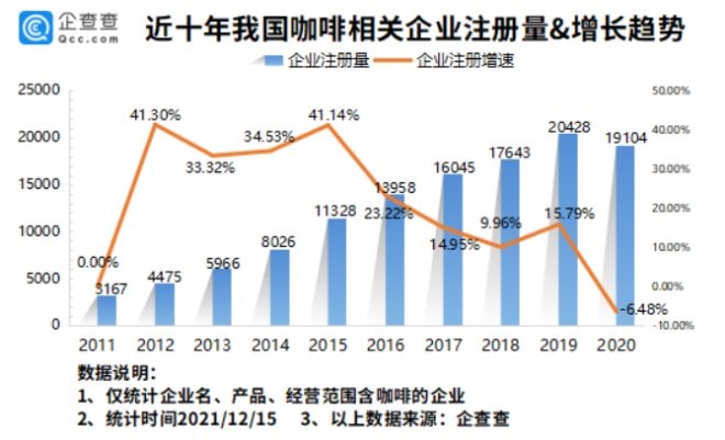 一是行業(yè)入局者眾多。企查查數(shù)據(jù)顯示,2021年我國現(xiàn)存咖啡相關(guān)企業(yè)15.67萬家。2020年新增1.91萬家,同比減少6.48%。2021年前11月,我國新增咖啡相關(guān)企業(yè)2.23萬家,同比增長31.28%。