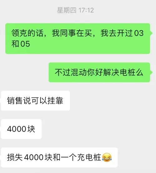 “本身車就不貴,所以感覺還好。畢竟電池沒問題,還能繼續(xù)用5、6年。我問過4S店,買電動二手車的都是下沉城市用戶,而且當時那個車的電池是韓國電池,不虛高,經(jīng)常跑到15公里才去充電!