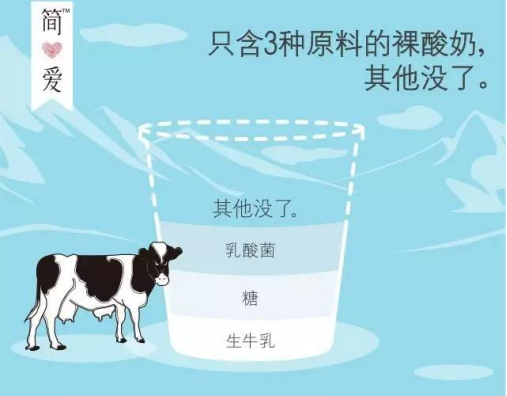 簡愛的產(chǎn)品突出成分極簡,主推“無添加劑”、“精準(zhǔn)控糖”、“0%蔗糖”等概念。一句“生牛乳、糖、乳酸菌,其他沒了”,更是在營銷創(chuàng)意上強(qiáng)化無添加品牌符號。雖然有無添加劑不是衡量酸奶好壞的標(biāo)準(zhǔn),在標(biāo)準(zhǔn)范圍內(nèi)使用添加劑,其實(shí)是安全的,但“其他沒了”已經(jīng)在消費(fèi)者心智當(dāng)中占領(lǐng)一定地位,成為簡愛的競爭優(yōu)勢。
