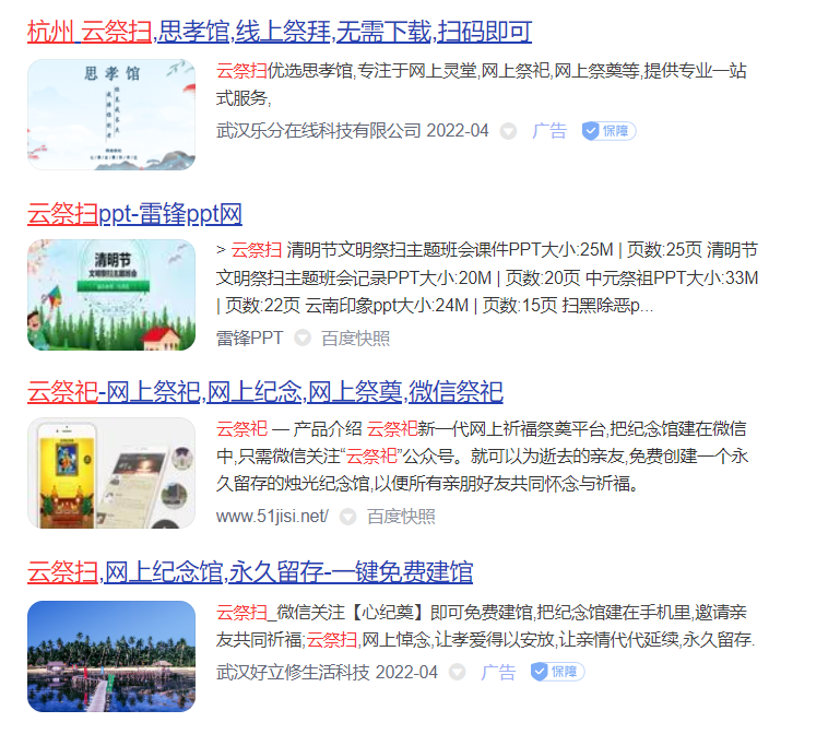 不少云祭掃網(wǎng)站還有著“廣告”標(biāo)識