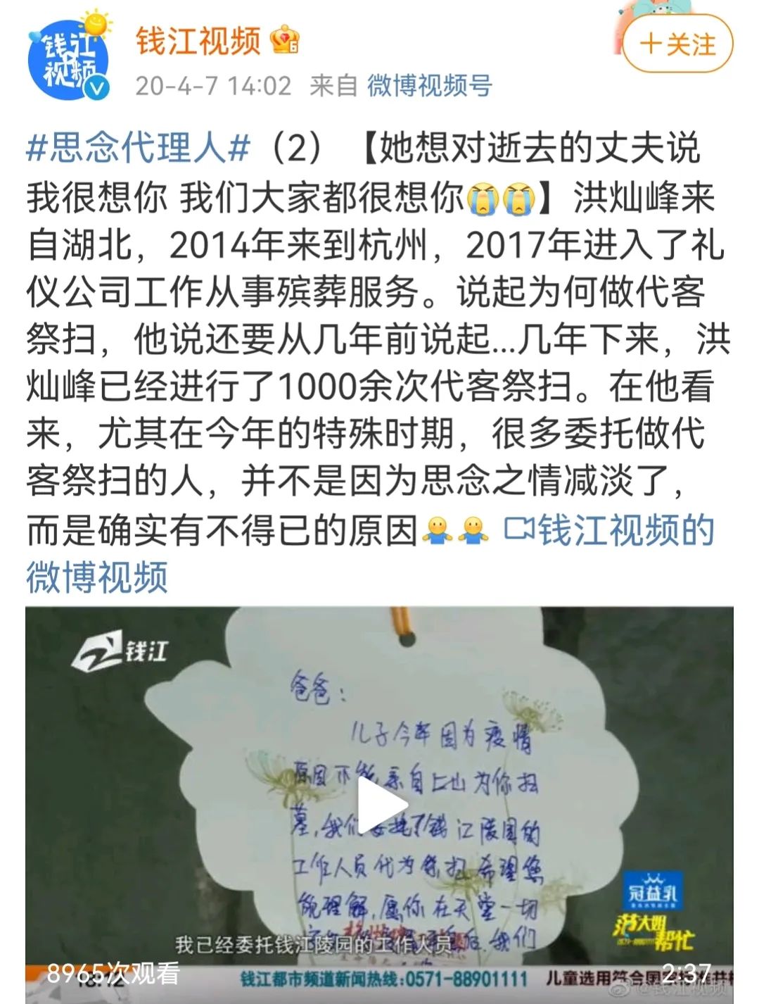 只不過,這類偏官方性質(zhì)的“云祭掃”和“代客祭掃”服務(wù)大多還是出現(xiàn)在大城市,服務(wù)也多半由公墓或者公墓合作的商家提供,更多想要“云祭掃”和“代客祭掃”服務(wù)的人,只能將目光轉(zhuǎn)移向互聯(lián)網(wǎng),尋求其他的幫助。