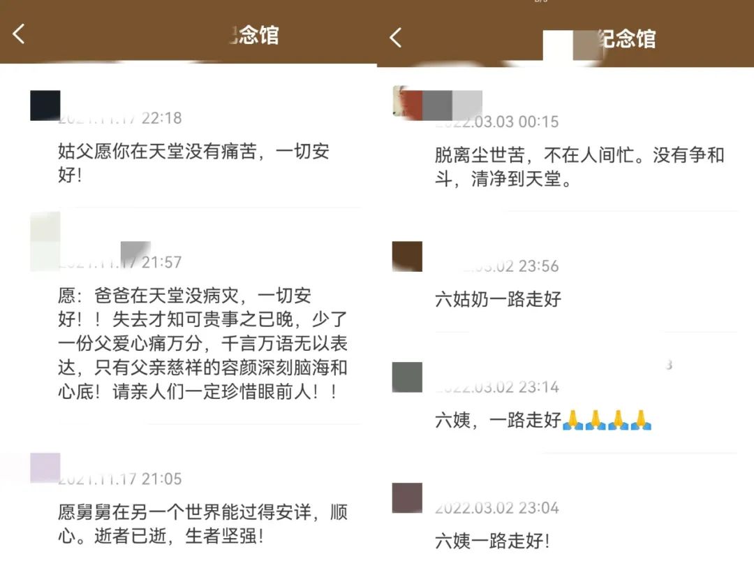 通過拉人建立紀(jì)念館成為代理并不難,在幾個APP和小程序中翻看紀(jì)念館的留言板,絕大多數(shù)留言都是親屬的,只要有一個人注冊了相關(guān)的App,那么就能通過“分享紀(jì)念館”的功能將身邊的親屬拉進(jìn)平臺內(nèi),而親屬也有可能建立更多紀(jì)念館或者在紀(jì)念館內(nèi)消費(fèi)。在心紀(jì)奠的代理宣傳冊中,不少代理商都是殯葬行業(yè)的從業(yè)人員和街道、醫(yī)院的辦證人員,他們也是最容易接觸到逝者家屬的人。